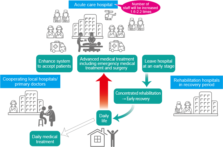 - The sharing of roles among local hospitals, hub hospitals, and recovery-period hospitals will progress, and cooperation