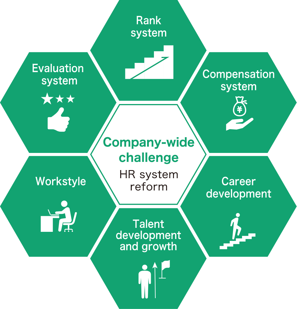 At HOGY MEDICAL, we are implementing a human resources system that supports each employee’s willingness to take on challenges and grow, with the goal of developing talent that contributes to the execution of our management and business strategies. We are clarifying individual roles and evaluation criteria to create an environment in which employees can maximize their performance, while enhancing training programs that support autonomous career development. We are also advancing a range of initiatives to support diverse workstyles tailored to employees’ life stages.