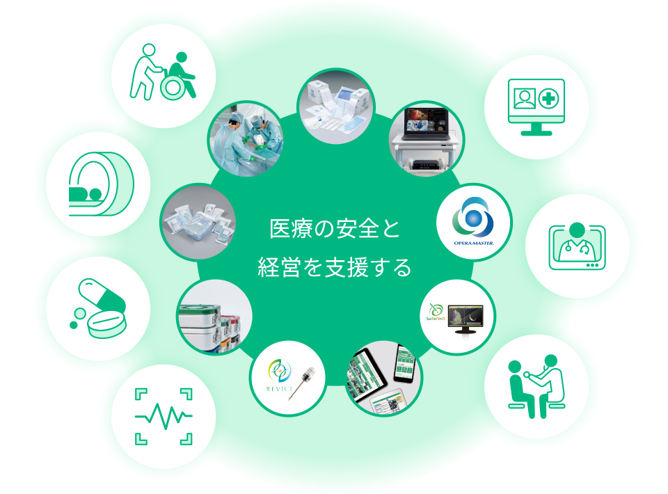 私たちは顧客視点を重視し、医療現場との密接な連携を通じて真の課題解決に取り組み続けます。「モノやサービス」「ひと」「情報」を融合させた独自のソリューションで実現力を高め、国内外を問わず医療現場を支えていきます。