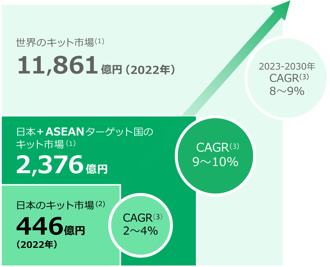 ※キット製品シェア率は株式会社矢野経済研究所『2022-2023年度版 医療・衛生用品の市場実態と製品別需要動向』