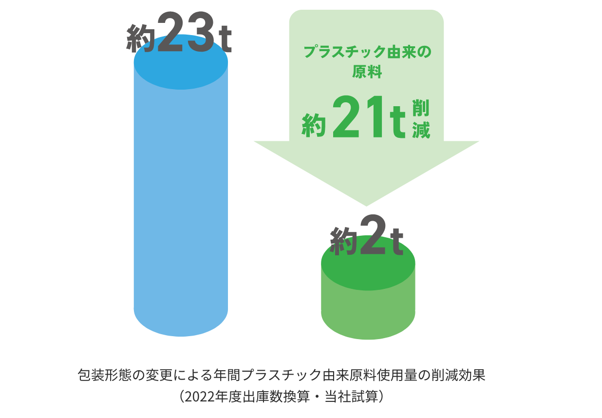 原材料や使用量、製造過程において取引先の皆さまの協力を得ながら、環境に配慮した製品づくりを目指しています。製品そのものだけでなく、包装形態や、輸送方法など、すべてのビジネスプロセスで環境に配慮した選択を心掛けています。