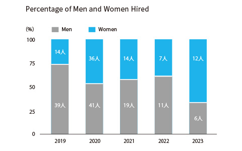 We aim to have the percentage of female managers, increase to 7% by 2025, and to 10% or higher by 2030. We are also focusing on hiring more women as the foundation of the initiative.