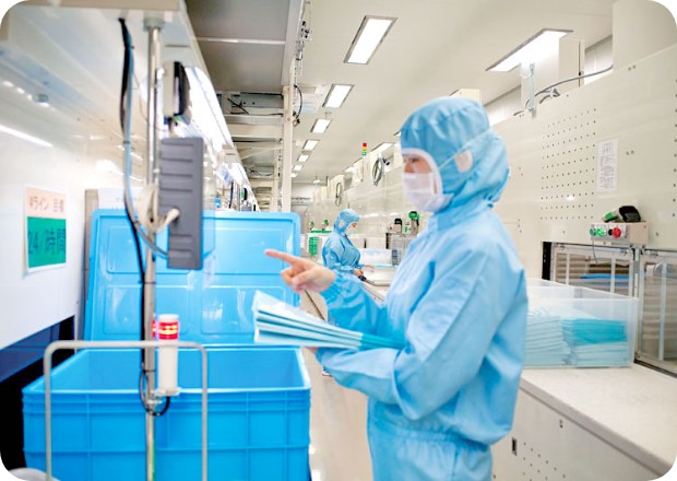 In response to Japan’s declining working population, we are advancing the automation of our production facilities to ensure the stable supply of tens of thousands of custom products over the long term. To reliably and efficiently deliver high-quality products, we continue to strengthen our production capabilities through initiatives such as the use of proprietary robots that automatically place materials in designated positions within packaging containers and the adoption of large-scale electron-beam sterilization systems.