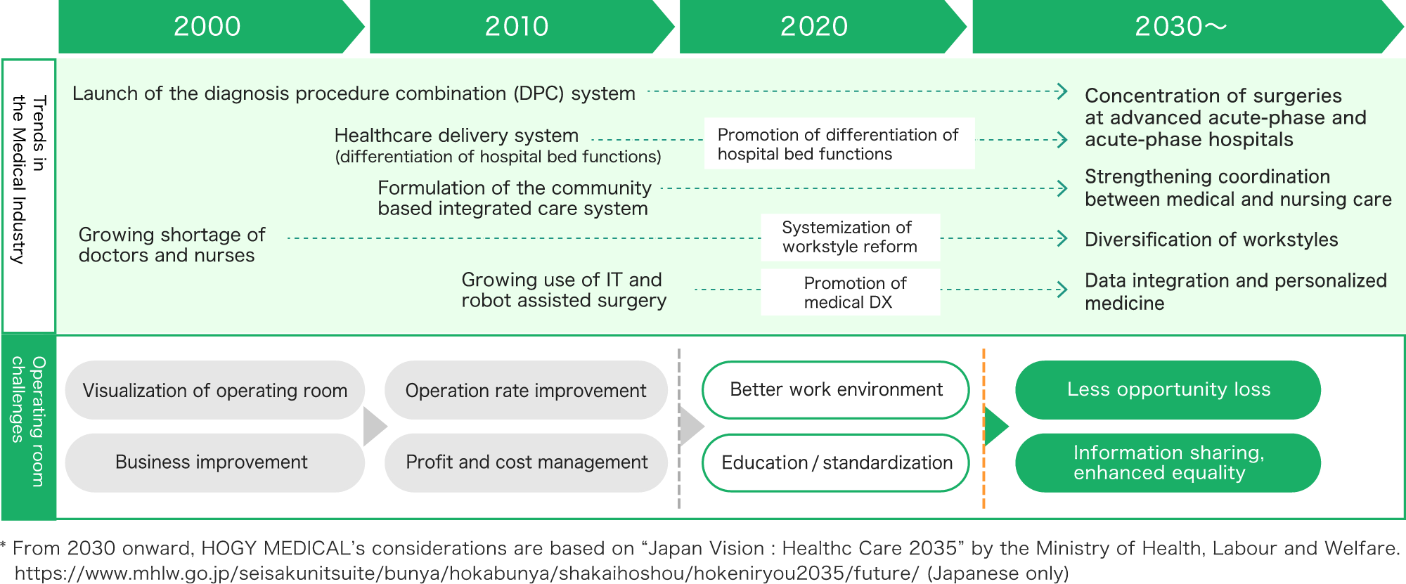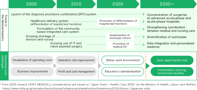 In Japan, efforts are underway to reform the healthcare delivery system to ensure that all people can continue to receive appropriate care while maintaining the strained universal healthcare system. As a result, it is expected that advanced medical care, such as surgeries, will become increasingly concentrated in certain medical institutions in the near future. At HOGY MEDICAL, we will continue to propose new, timely solutions that support operating rooms at those institutions and help as many patients as possible receive prompt treatment.