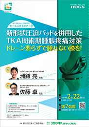 | Theme | Countermeasures against perioperative swelling and pain in TKA using a newly shaped compression pad: For knees, without draining or swelling |