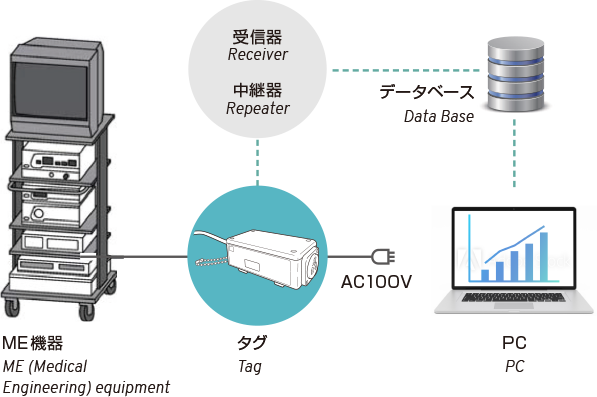 on/off status of equipment in real time, the operation of hundreds of pieces of equipment at a hospital can be grasped