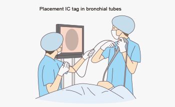 Place the IC tag with the registered ID at the target position through the bronchoscope channel.