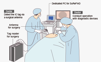 operation, the IC tag can be detected on the lung surface using a surgical antenna, and this can help surgeons to