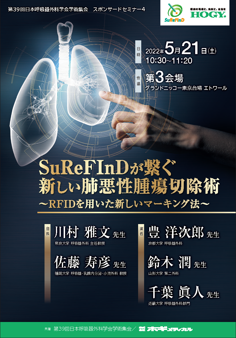 | 発表テーマ | SuReFInDが繋ぐ新しい肺悪性腫瘍切除術 ~RFIDを用いた新しいマーキング法~ |