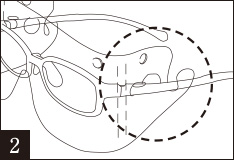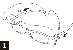 ステッチ部をメガネフレームに引っ掛け固定します。