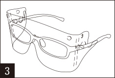アイシールドがメガネレンズに近づくようにして、正しく取り付けられていることをご確認ください。